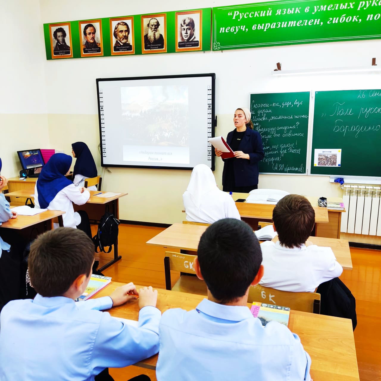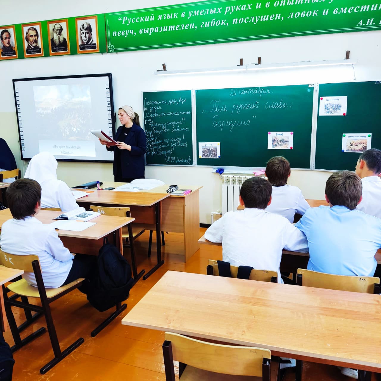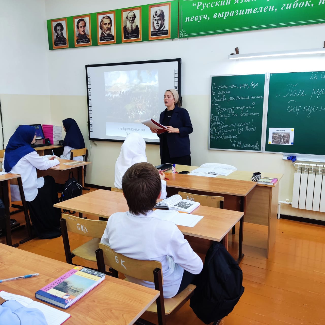 26.09.2023г. в МБОУ "Юбилейная СОШ" учителем русского языка и литературы Дунаевой Л.А. проведен урок "Недаром помнит вся Россия про день Бородина", посвященный памятной дате Бородинского сражения русской армии под командованием М.И. Кутузова с французской армией.