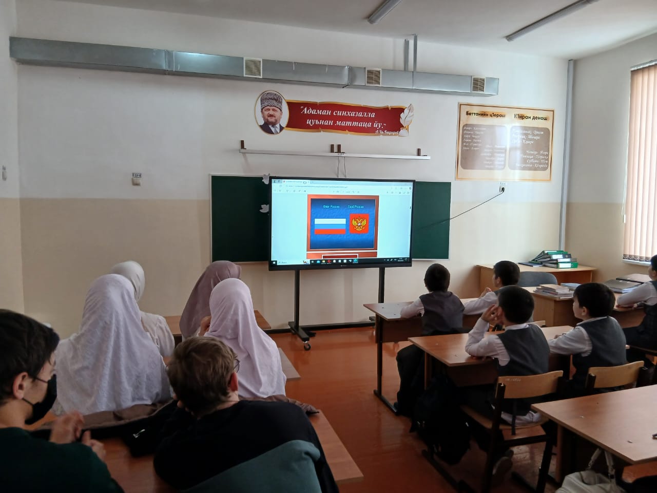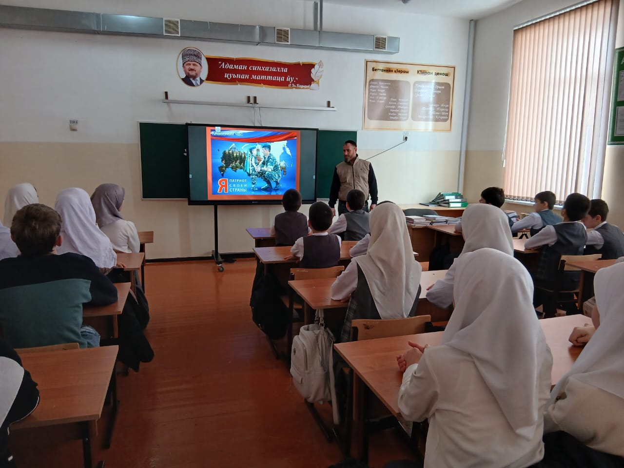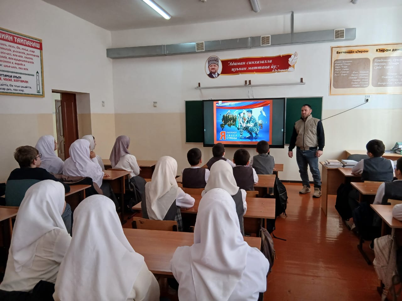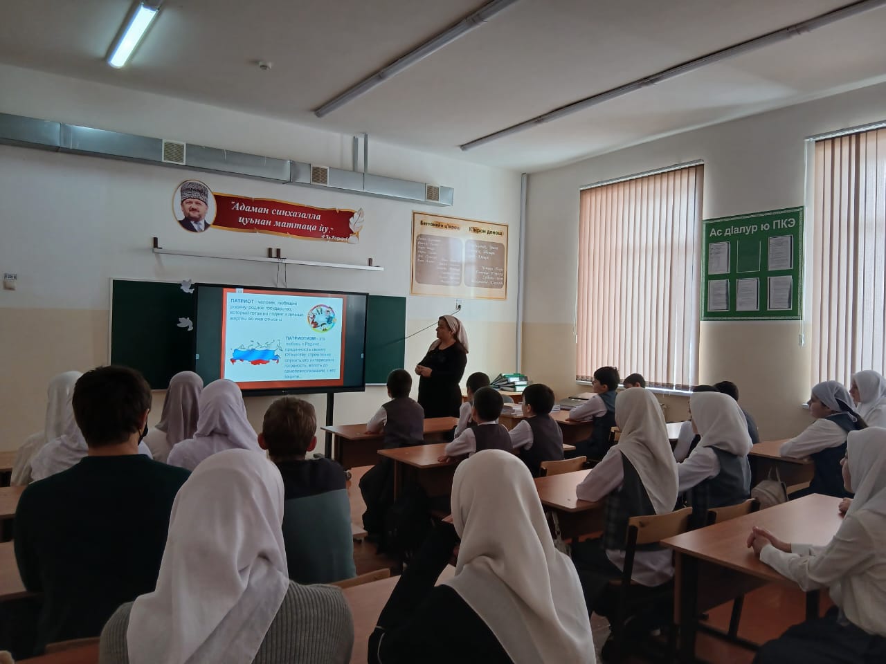 20.02.2025В МБОУ "Юбилейная СОШ" прошел урок, посвященный теме патриотизма. В этом занятии приняла участие заместитель директора по учебной работе Туршиева З.М., а также был приглашён сотрудник Федеральной службы безопасности (ФСБ). Они рассказали учащимся о значении понятия «патриотизм» и о том, что подразумевается под темой любви к своей Родине. В ходе урока также обсуждался патриотизм в контексте России, и особое внимание было уделено первому президенту Чеченской Республики, Герою России Ахмаду Хаджи Кадырову. Занятие вызвало у детей живой интерес, и они с увлечением слушали рассказ, активно задавали вопросы и делились своими мыслями.