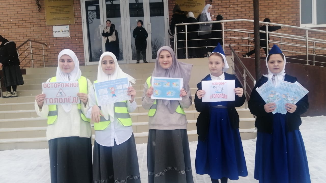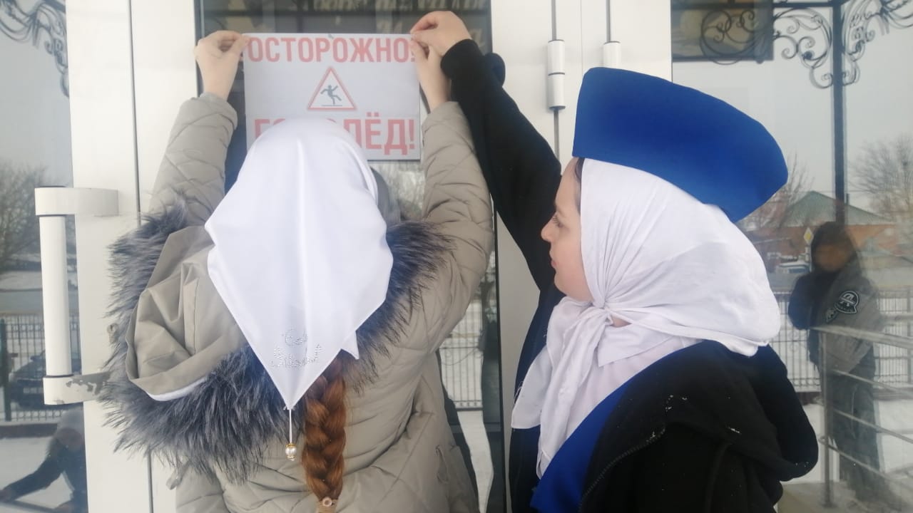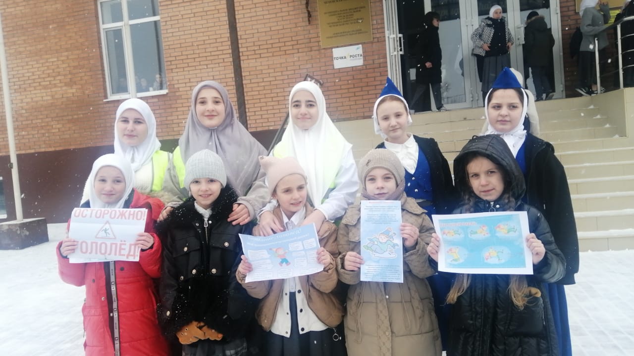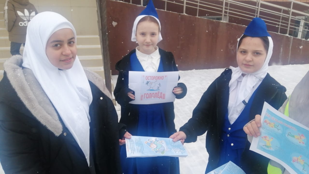 В рамках повышения безопасности на дороге, руководитель ЮИД Чучаева К. С., организовала мероприятие «Осторожно, гололед». Целью данного события стало информирование школьников о правилах безопасного поведения в зимний период, когда условия на дороге становятся особенно опасными из-за гололеда.